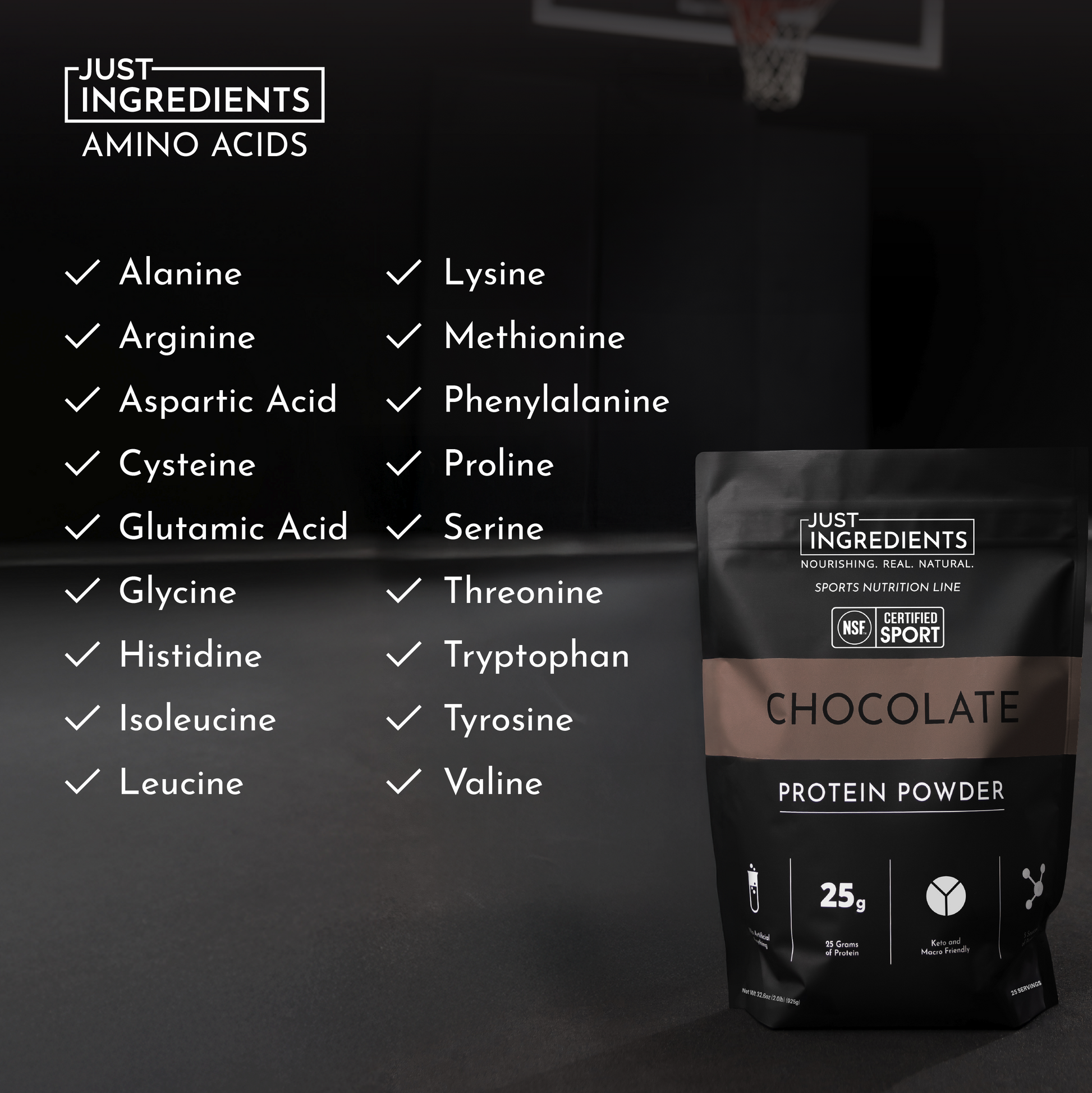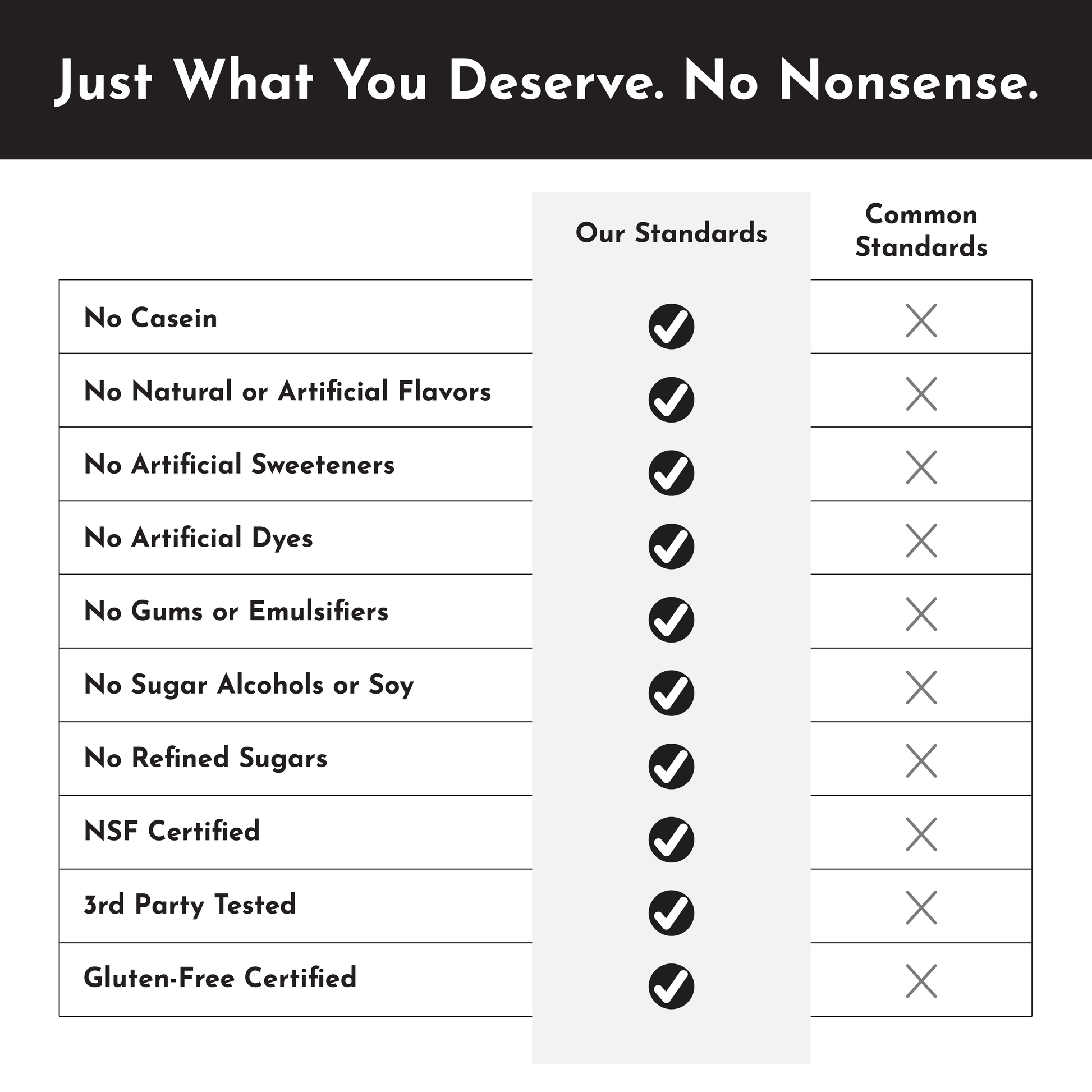 Chocolate Protein Powder is made with five premium protein sources and no artificial sweeteners or sugar alcohols. Proudly NSF Certified for Sport, this formula meets rigorous safety and quality standards. Made with 100% grass-fed, non-denatured whey from New Zealand, organic pea protein, organic pumpkin seed protein, grass-fed collagen, and organic chia seed protein.