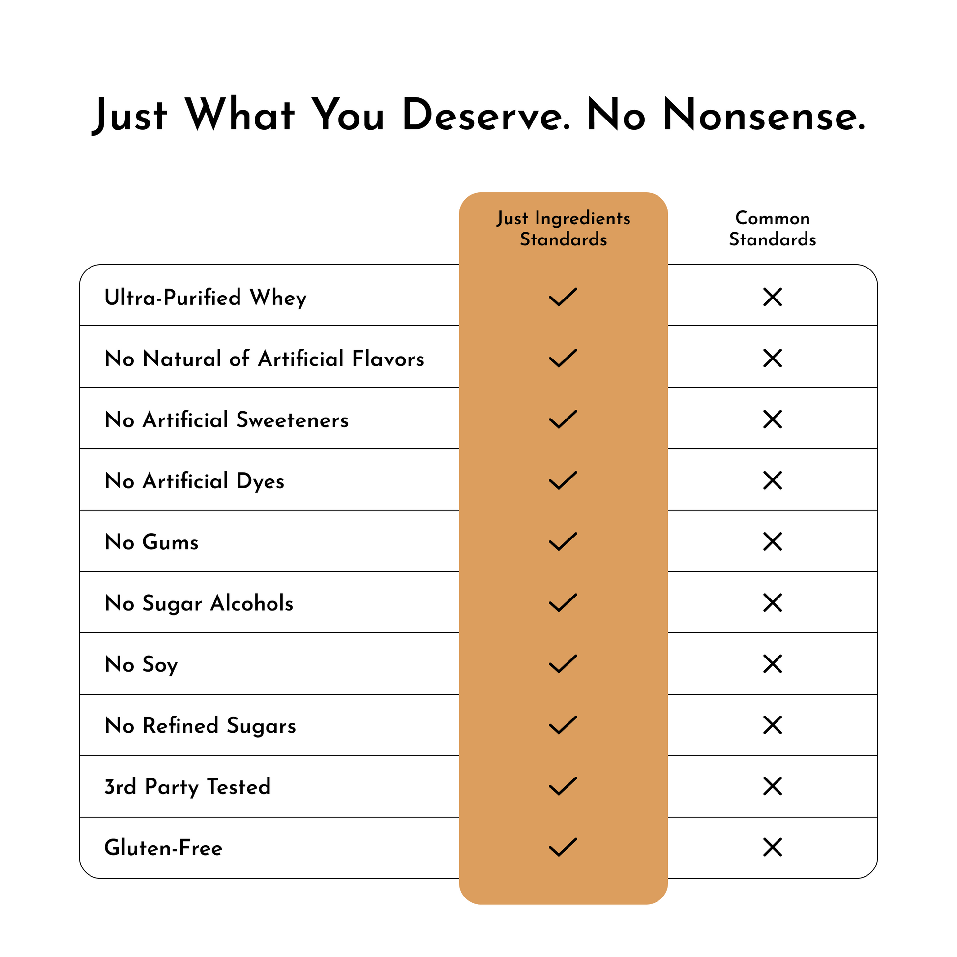 Just Ingredients’ Protein Powder is 100% natural with 5 protein sources for easy digestion and an amazing, rich taste.