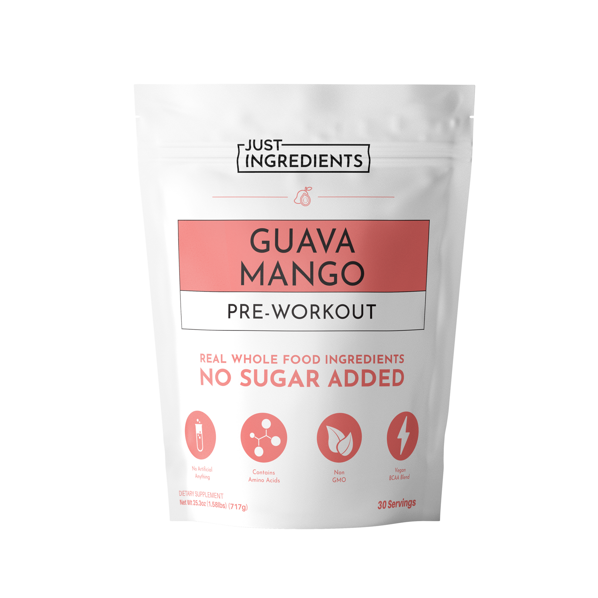 Just Ingredients’ Guava Mango Pre-Workout is a 100% natural, nourishing pre-workout drink that can increase energy, mood, strength, and endurance, reduce fatigue, and sharpen mental focus. Our pre-workout includes citrulline malate, taurine, beta alanine, and BCAAS for increased performance and recovery. Plus, because it’s formulated with adaptogens, you’ll be able to give your workout an added boost without the crash that can come with other pre-workouts.