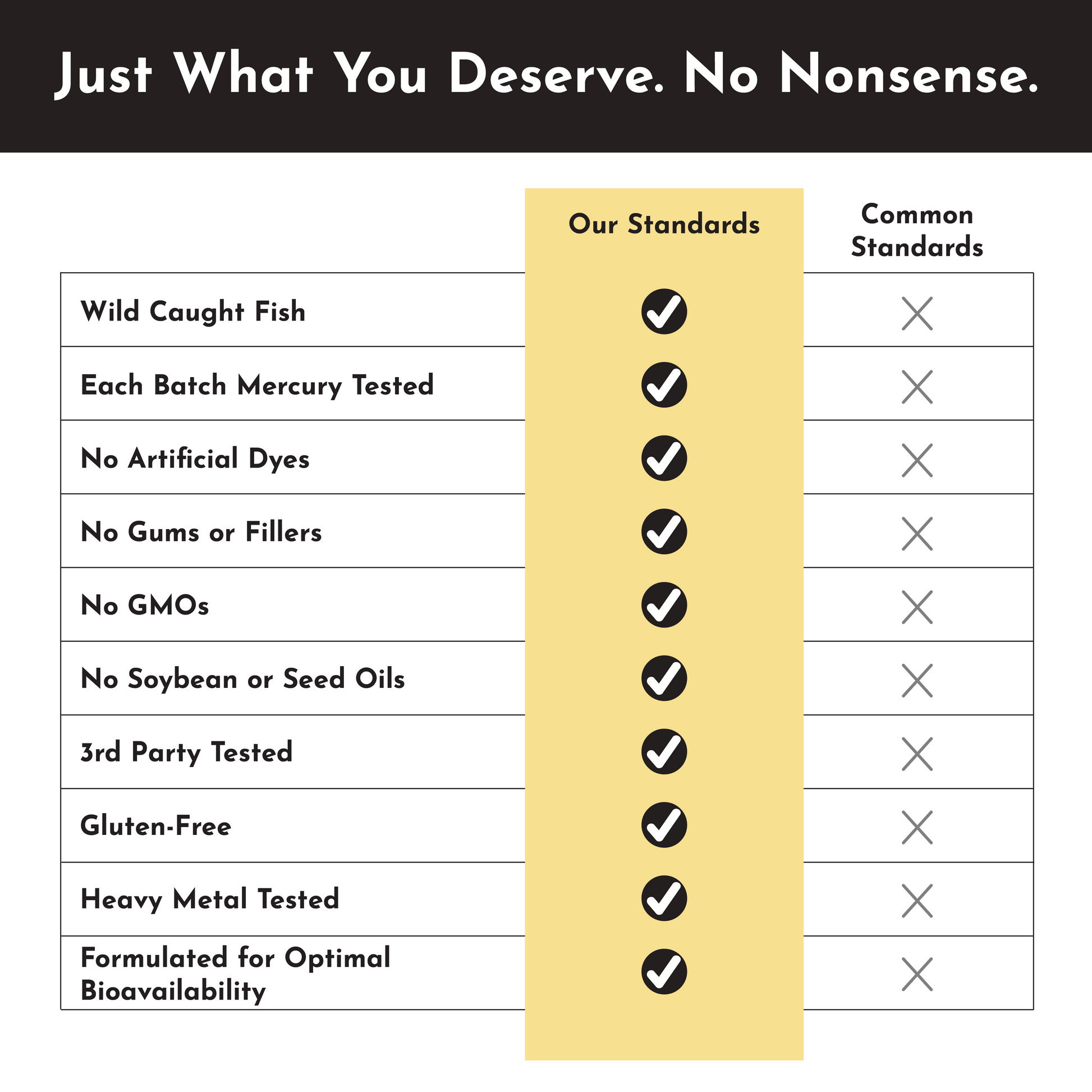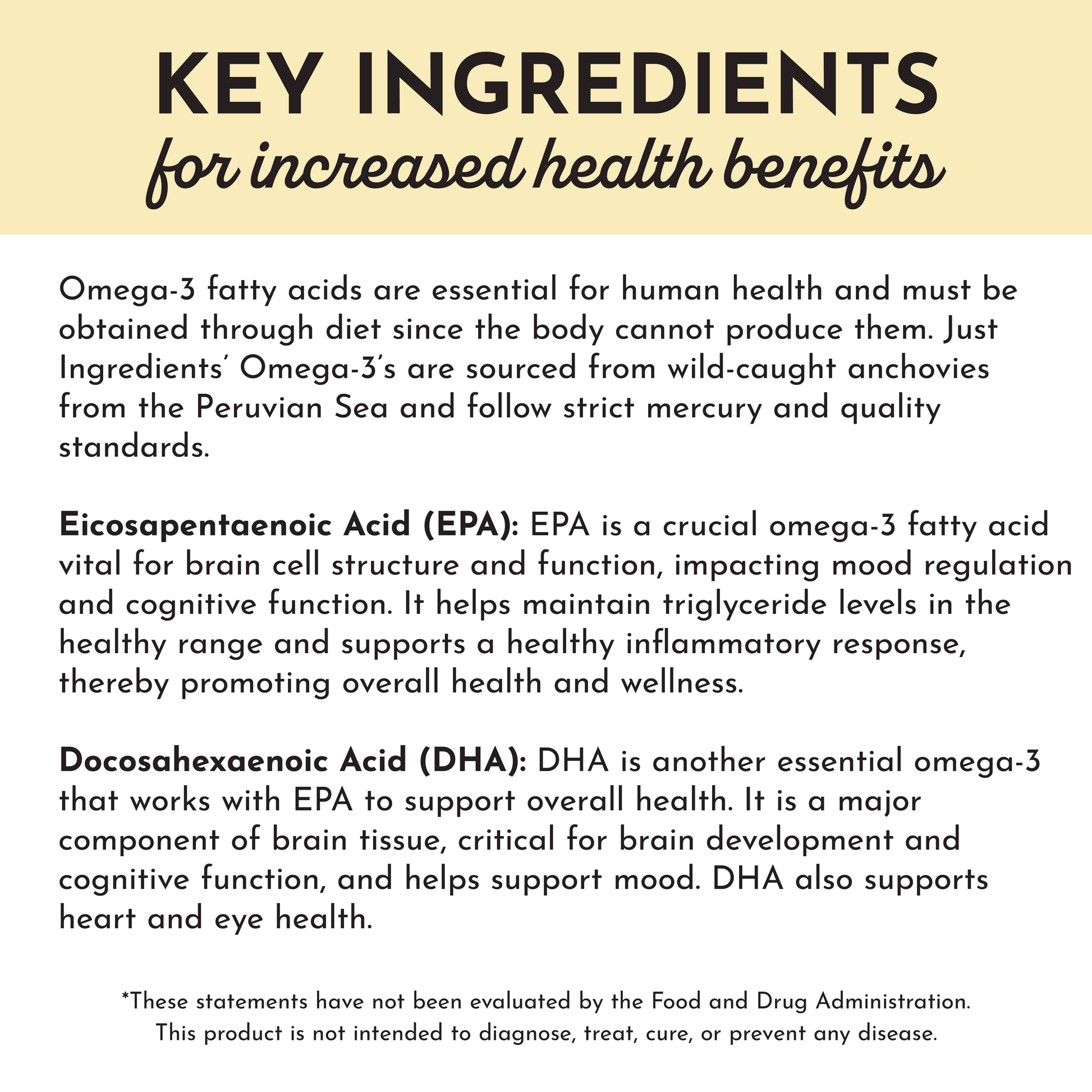 Omega-3 fatty acids are essential for human health and must be obtained through diet since the body cannot produce them. This omega-3 supplement is sourced from wild-caught anchovies from the Peruvian Sea and follow strict mercury and quality standards.