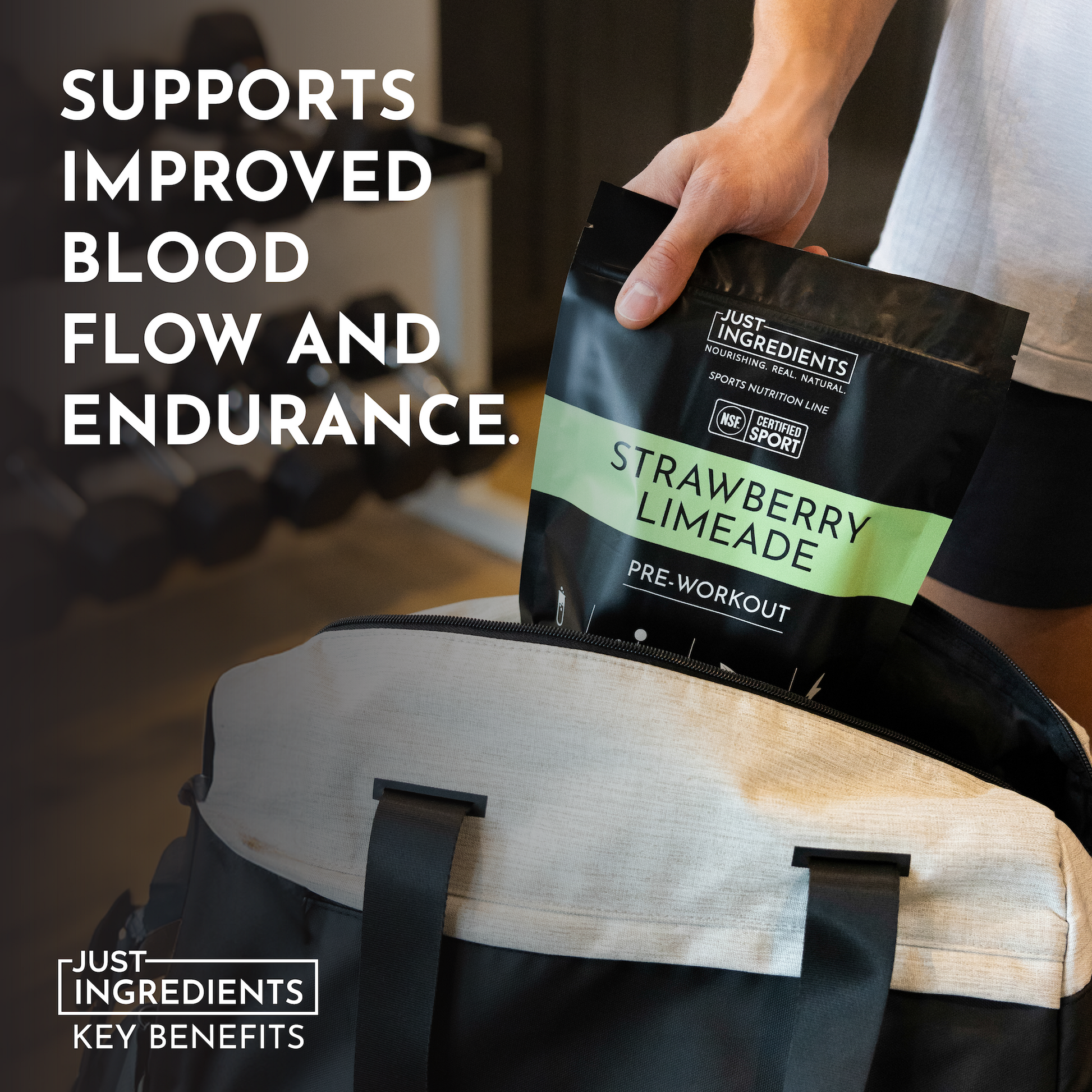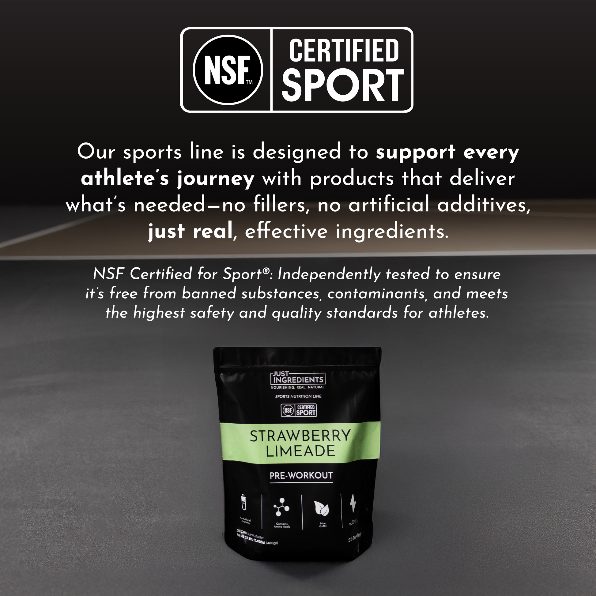 Power your workouts with Just Ingredients’ Strawberry Limeade Pre-Workout. This formula includes BCAAs and adaptogens, to support workout performance and recovery. Plus, it's NSF Certified for Sport®, so you can trust that every ingredient meets the highest safety and quality standards.