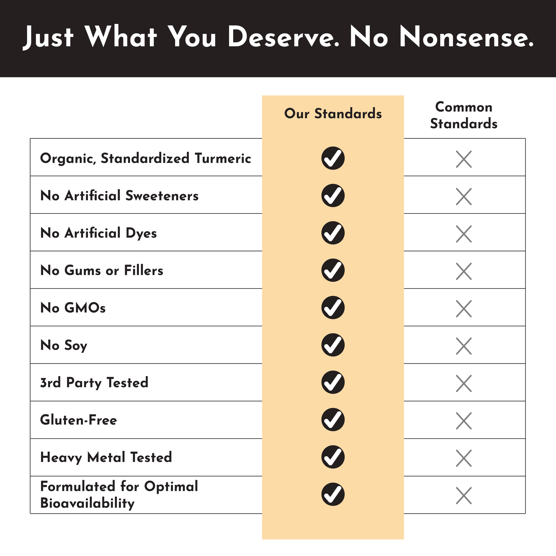Just Ingredients Turmeric Complex is formulated to support joint comfort, a balanced inflammatory response, and overall immune health.* It features a concentrated turmeric extract standardized to 95% curcuminoids for enhanced potency. Black pepper extract is included to help improve the absorption of curcumin—the active compound in turmeric.* The formula also includes resveratrol and boswellia, which may offer additional support for a healthy inflammatory response and overall wellness.*