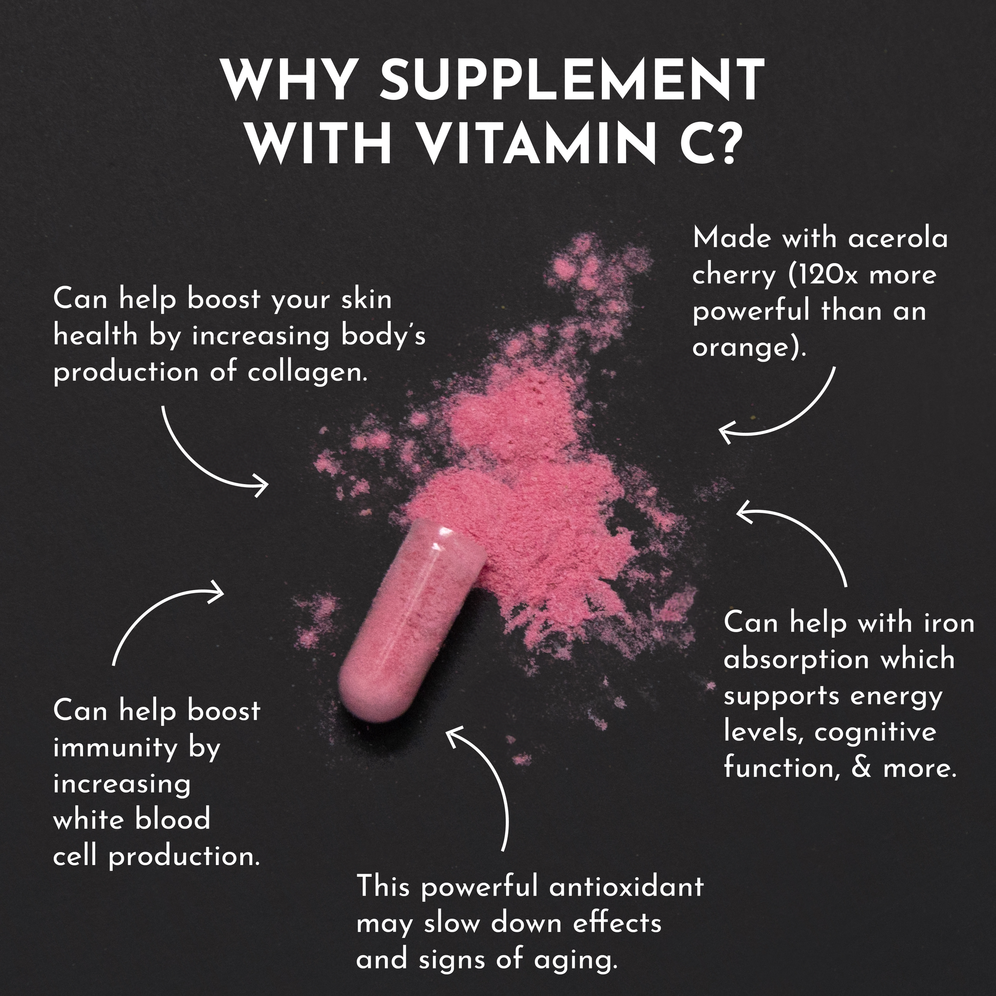 Just Ingredients Vitamin C Complex delivers whole food–based vitamin C to support immune function, skin health, and antioxidant protection—without synthetic ascorbic acid.* Formulated with Acerola Cherry, Camu Camu, and Amla Berry—concentrated sources of vitamin C—this blend provides nutrients in bioavailable forms. Vitamin C also plays a role in collagen production, iron absorption, and defending against oxidative stress.*